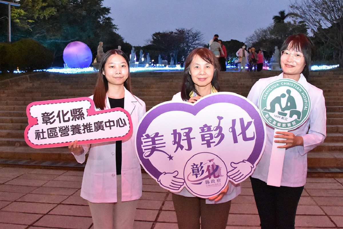 「食健康、食營養,營養師予你身體更佳勇」快閃活動,22日晚上在彰化著名的景點-八卦山大佛廣場。集結各領域營養師的彰化縣營養師公會(包括學校、團膳、社區及醫院)在廣場熱跳「我的餐盤舞」,透過健康活力氣息,讓前往運動及遊玩的民眾駐足欣賞、認識「營養師」。