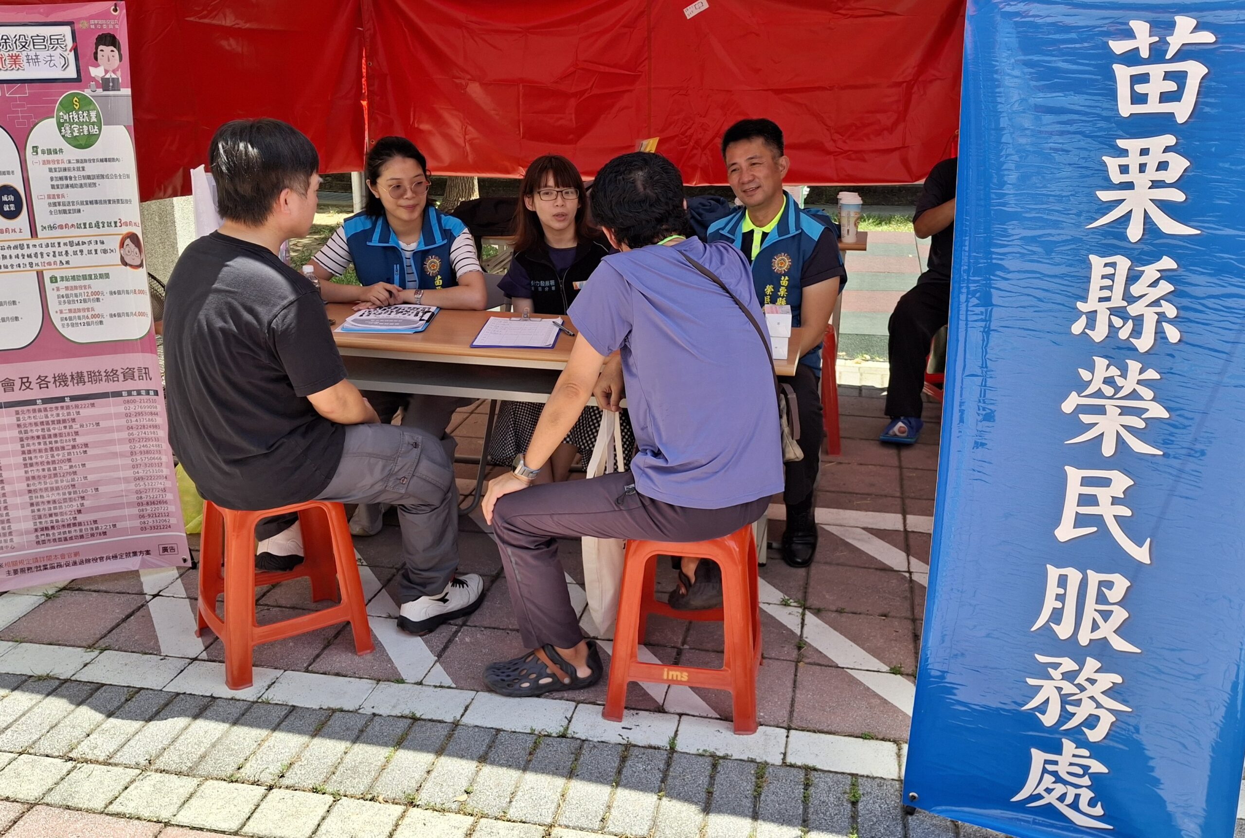 輔導會為促進國軍退除役官兵投入職場及穩定就業,創造另一職涯高峰。苗栗榮服處攜手勞動部苗栗就業中心,於頭份市民生里社區活動中心辦理現場徵才就業媒合活動,本次活動,陳立中處長親自對榮民及第二類退除役官兵,互動說明輔導會就學、就業、就醫、就養及服務照顧等核心工作,獲熱烈迴響及肯定。