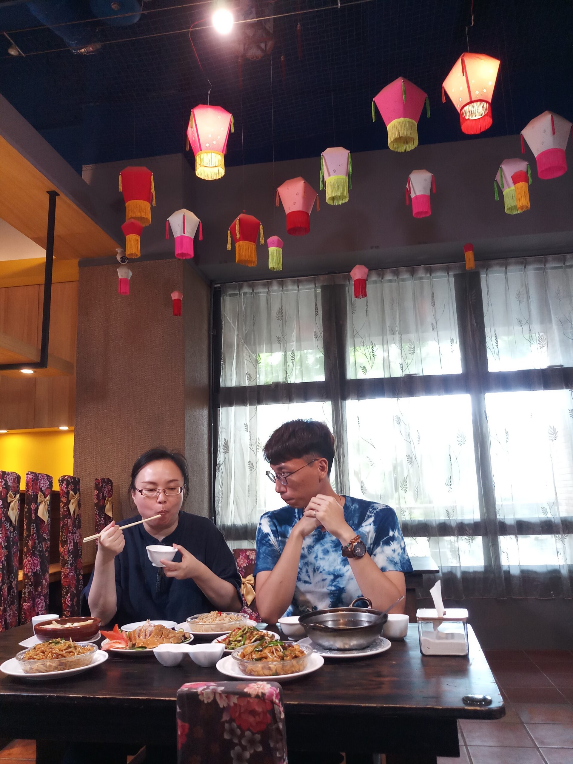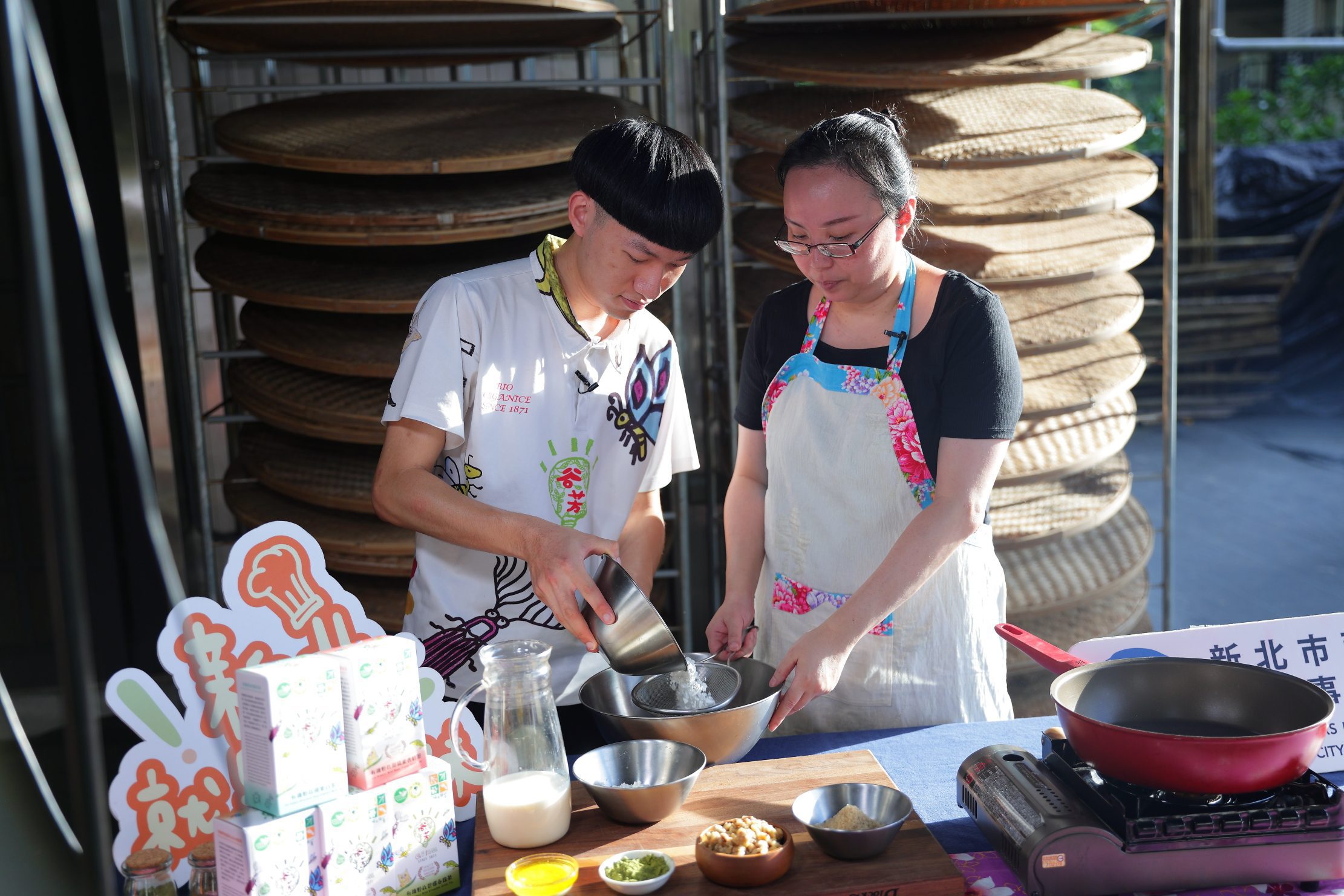 ▲ㄚ樺媽媽(左)於新北市客家文化園區客家美食主藝餐廳拍攝「新北就是哈這味(位)」。(圖/新北市客家事務局 提供)