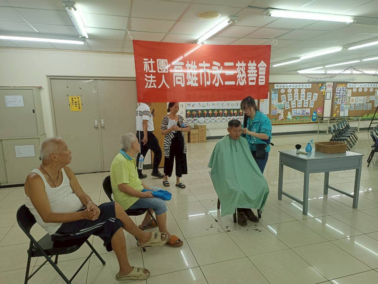 圖3.榮民眷屬在現場排隊等候義剪,永三慈善會理事長卓衣玲親自服務。(圖/高雄榮服處提供)