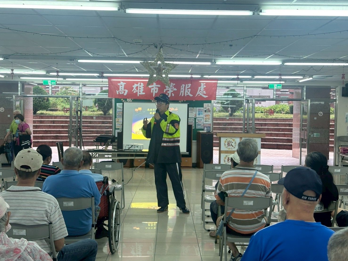 圖6.岡山分局警員於活動現場進行防詐騙宣導。(圖/高雄榮服處提供)